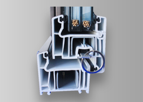 該款門窗采用65mm大斷面型材,門窗質的細密平滑,角強度可達3000N以上。型材腔體內部穿入1.5mm厚度的滿腔鍍鋅鋼襯,門窗整體抗風壓強度可達到5000Pa以上,可以滿足10層樓以上的力學性能要求。